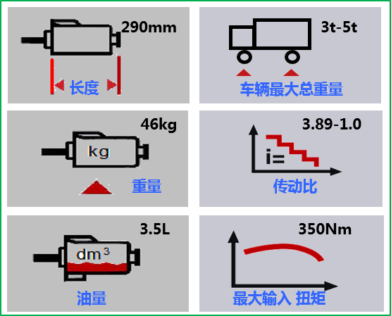 •双动力输入:一根输入轴控制1、3挡 一根输入轴控制2、4挡,节省了整车布置空间,降低了系统重量,节约成 本;